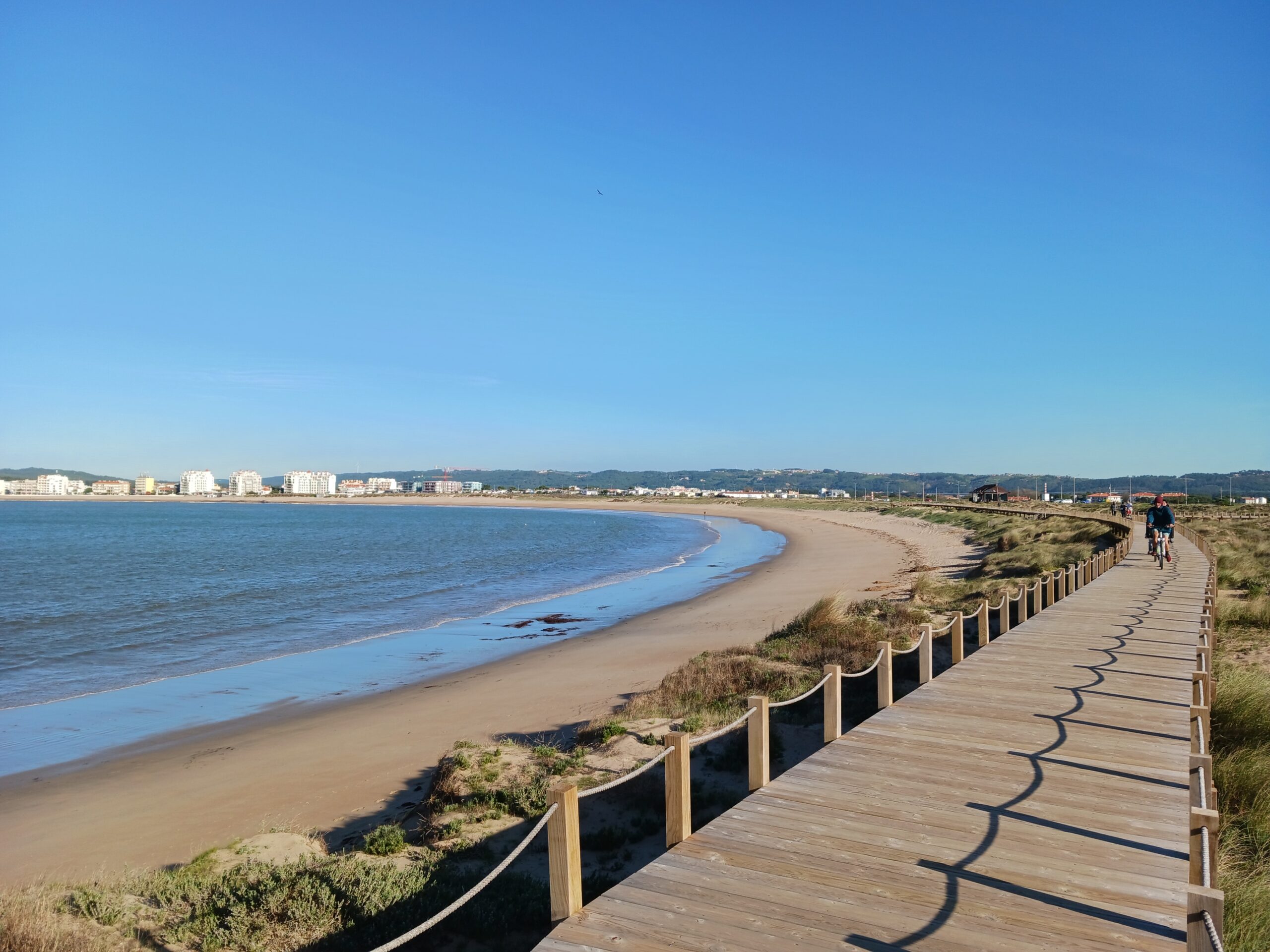 Beyond the coastline, the Silver Coast offers a varied landscape of lagoons, green hills and walking areas. The Óbidos Lagoon is ideal for a quiet walk or birdwatching, while the inland countryside offers a slower pace and open views. Around the Óbidos Lagoon, a mix of walking paths and occasional boardwalk sections allows for relaxed strolls close to the water, with plenty of spots to pause and take in the landscape. Wooden boardwalks in Salir do Porto / São Martinho do Porto make it easy to explore the dunes and coastline, offering accessible routes with wide views over the bay.